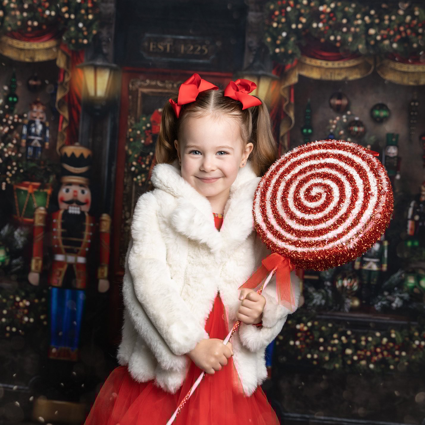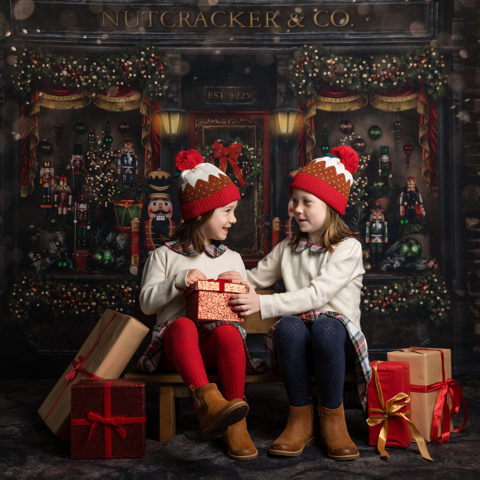 This is a magical Toy Store! This is an outdoor scene. Dress up in your Christmas best, with presents and toys to play with. You would also wear an outdoor coat for snowy shots!